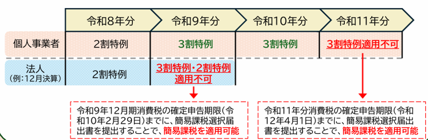 ※現行の2割特例は、令和8年9月30日までの日の属する課税期間で終了します。